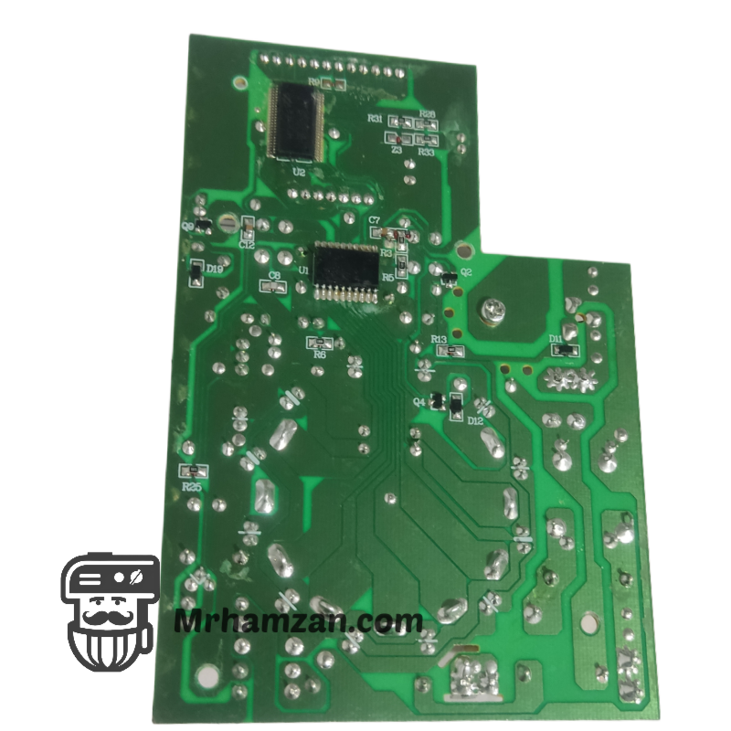 · مرکز کنترل تمام عملکردها: این برد، مسئولیت مدیریت و هماهنگی تمامی عملکردهای الکترونیکی دستگاه از جمله کنترل سرعت (6 سرعته + حالت پالس)، تایمر قابل تنظیم تا ۲۰ دقیقه، نمایش اطلاعات روی صفحه LCD و سیستم ایمنی (توقف خودکار با بلند کردن بازو) را بر عهده دارد.