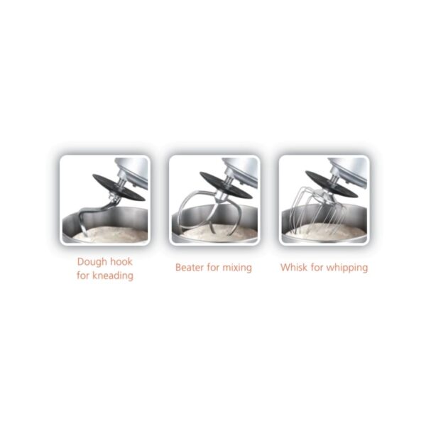 • موتور قدرتمند 1800وات: با توان 1800 وات واقعی، این دستگاه به‌راحتی خمیرهای سنگین، مخلوط‌های کیک و خامه را آماده می‌کند و برای استفاده‌های طولانی‌مدت مناسب است.